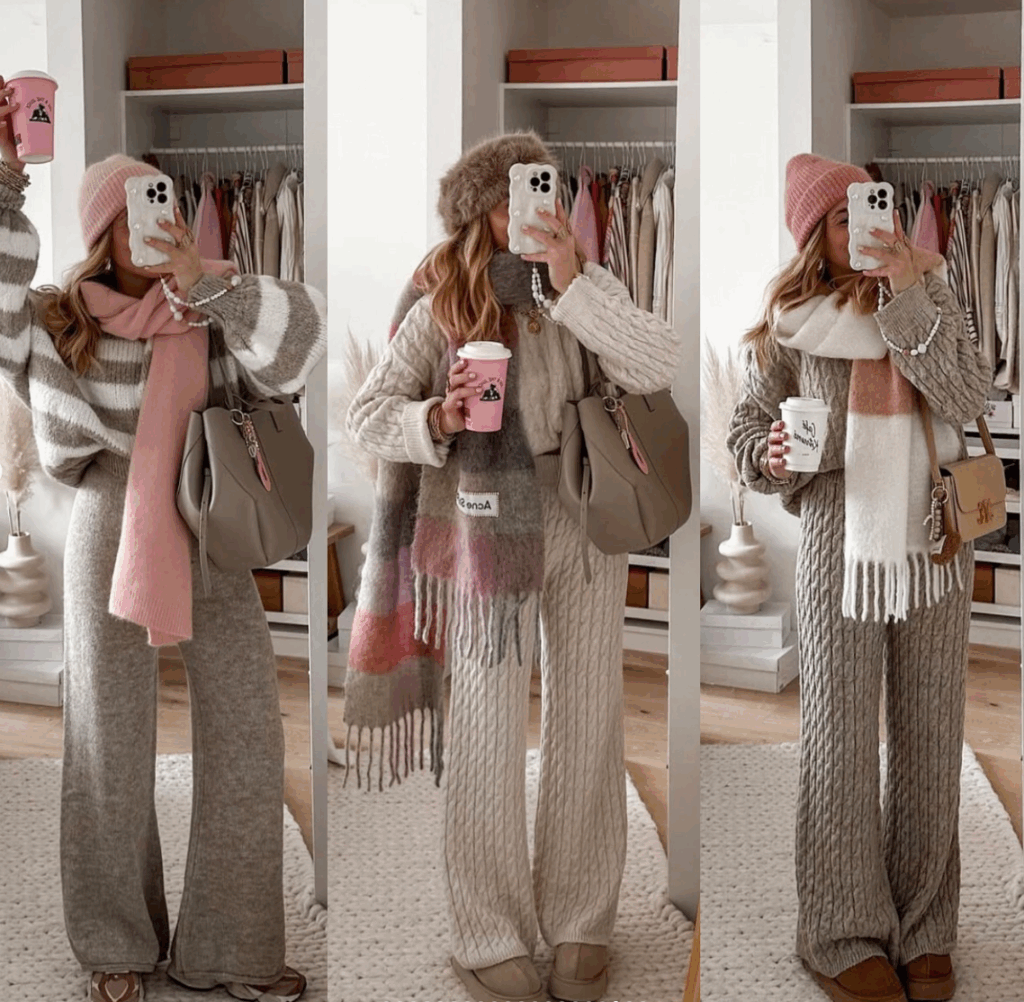 Scarves are not just about staying warm, they are a key accessory that can transform your fall outfit. In 2025, knitted oversized scarves, plaid patterns, and lightweight wraps are trending. Whether you drape them over your shoulders or tie them neatly, they add both coziness and sophistication. In terms of color and patterns plaid, houndstooth, or neutral solids are a must have. You can also add some color to brighten your overall outfit.