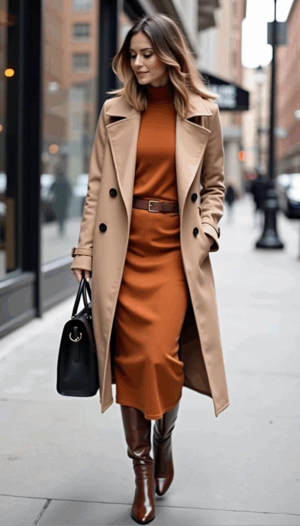 No fall wardrobe feels complete without a trench coat. This classic piece has stood the test of time, and in 2025, it’s making a strong comeback with refreshed designs – think belted silhouettes, oversized lapels, and textured fabrics. Perfect for layering over knits, blazers, or dresses, a trench coat instantly elevates your look while keeping you warm. Go for colors like camel, charcoal, or olive for a timeless look. For a bolder twist, deep burgundy or patterned plaid trenches are trending this year. Pair a neutral trench with wide-leg denim and ankle boots for a modern yet effortless street-style vibe. But this season is also about experimenting with subtle and bold colors.