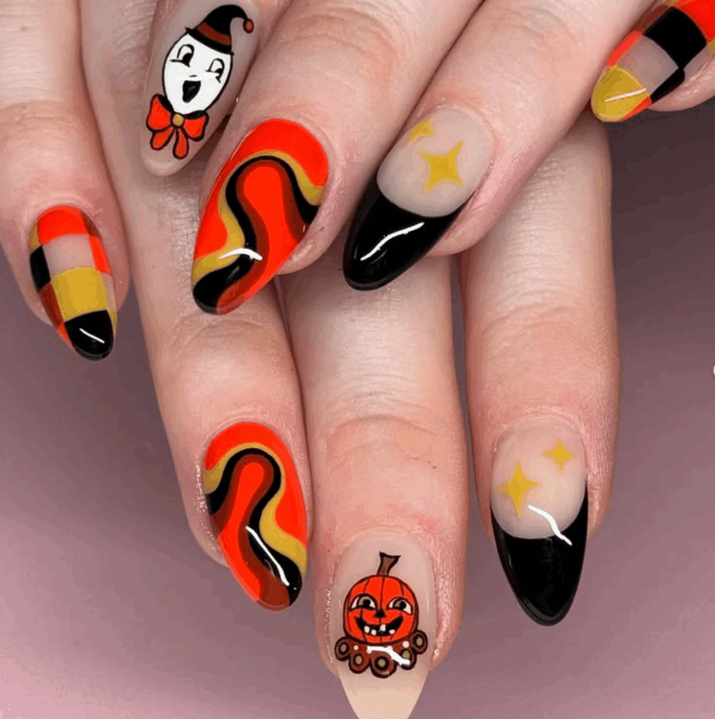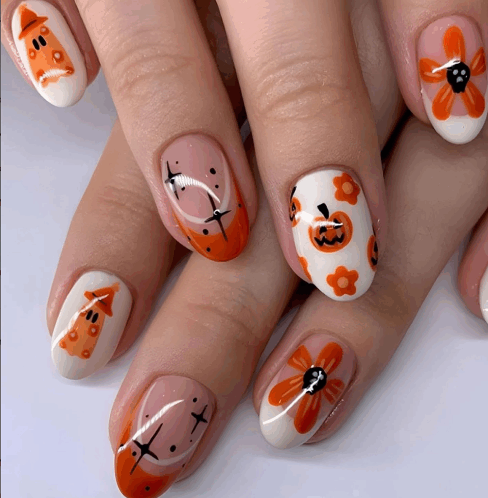 Not every Halloween look has to be scary! Try candy corn colors, pastel pumpkins, or adorable ghost faces for a sweet and playful vibe. Perfect for kids, teens, or anyone who prefers a lighthearted Halloween aesthetic.