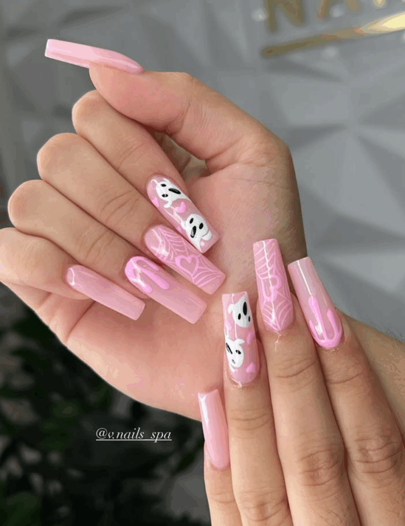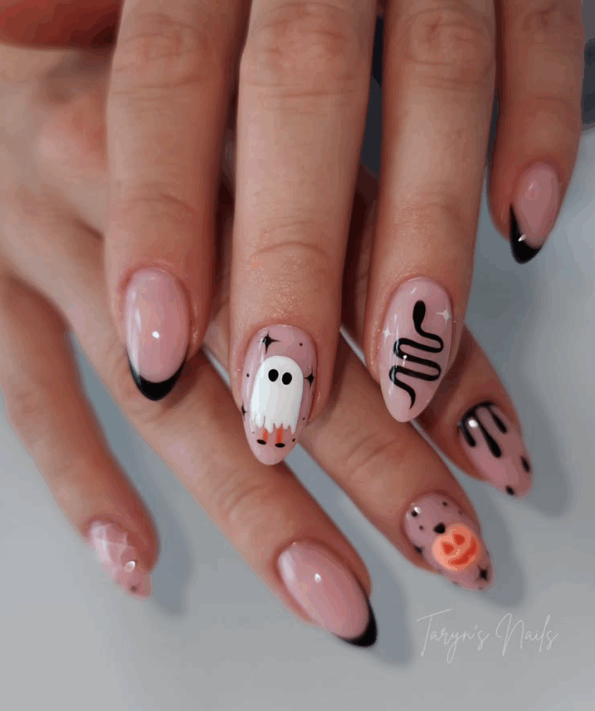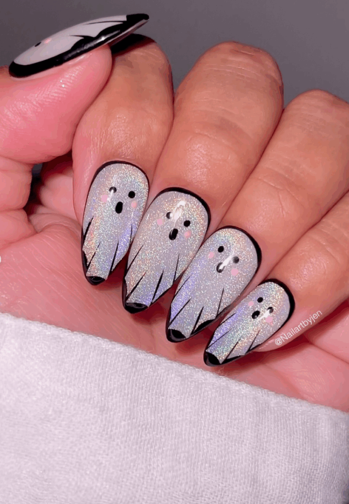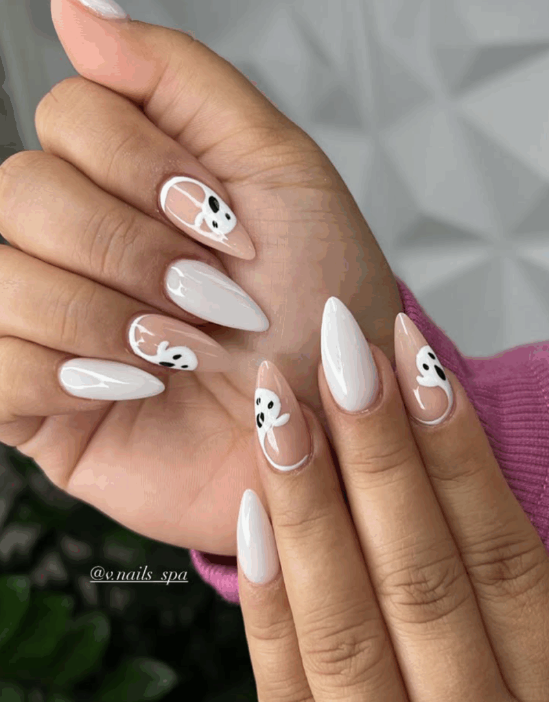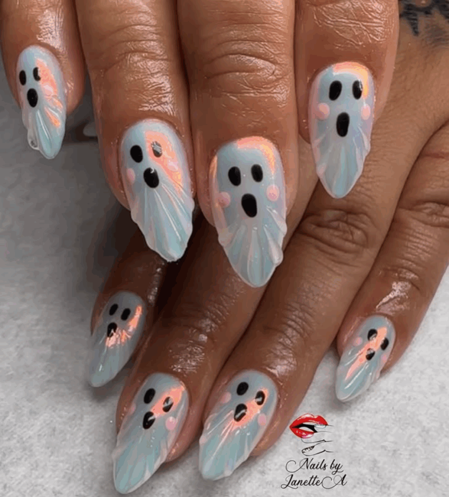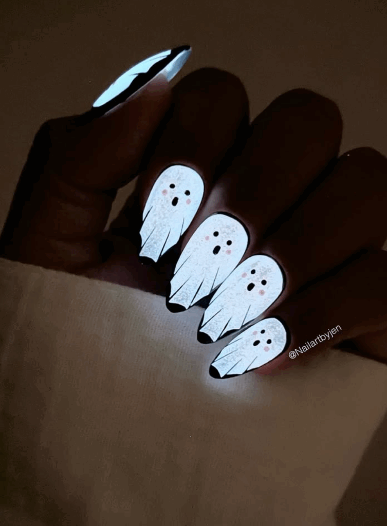 Playful ghost nail art is always a hit. From cute cartoon ghosts to minimal white silhouettes, they’re fun and versatile. Besides these are easy to create.