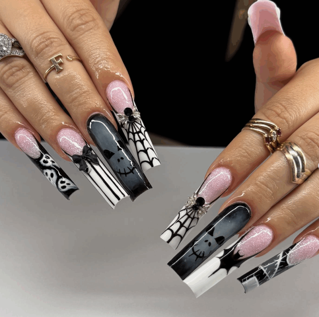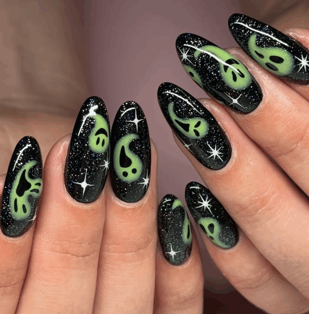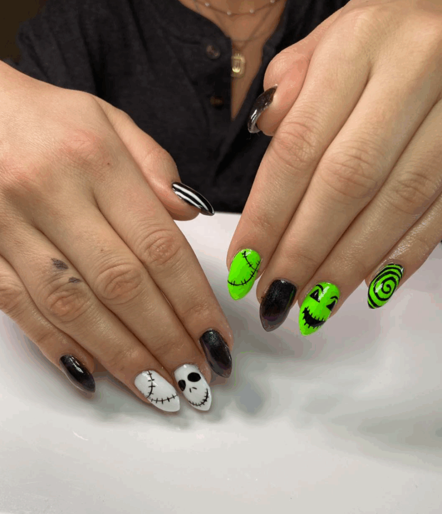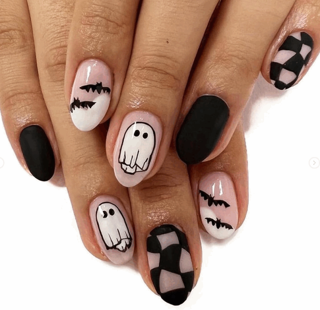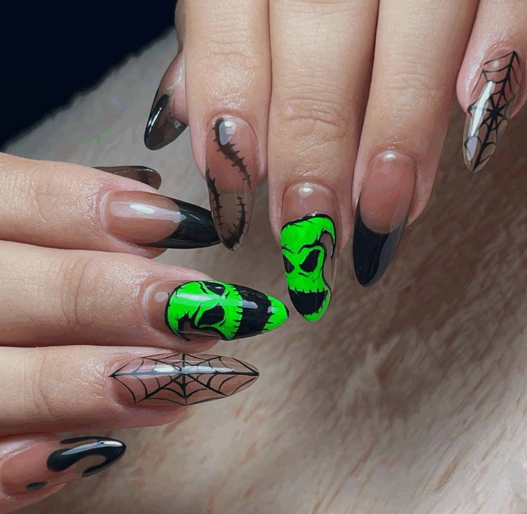 Glow-in-the-dark nails, bloody French tips, and minimalist black-and-white designs are some of the biggest Halloween nail trends this year.