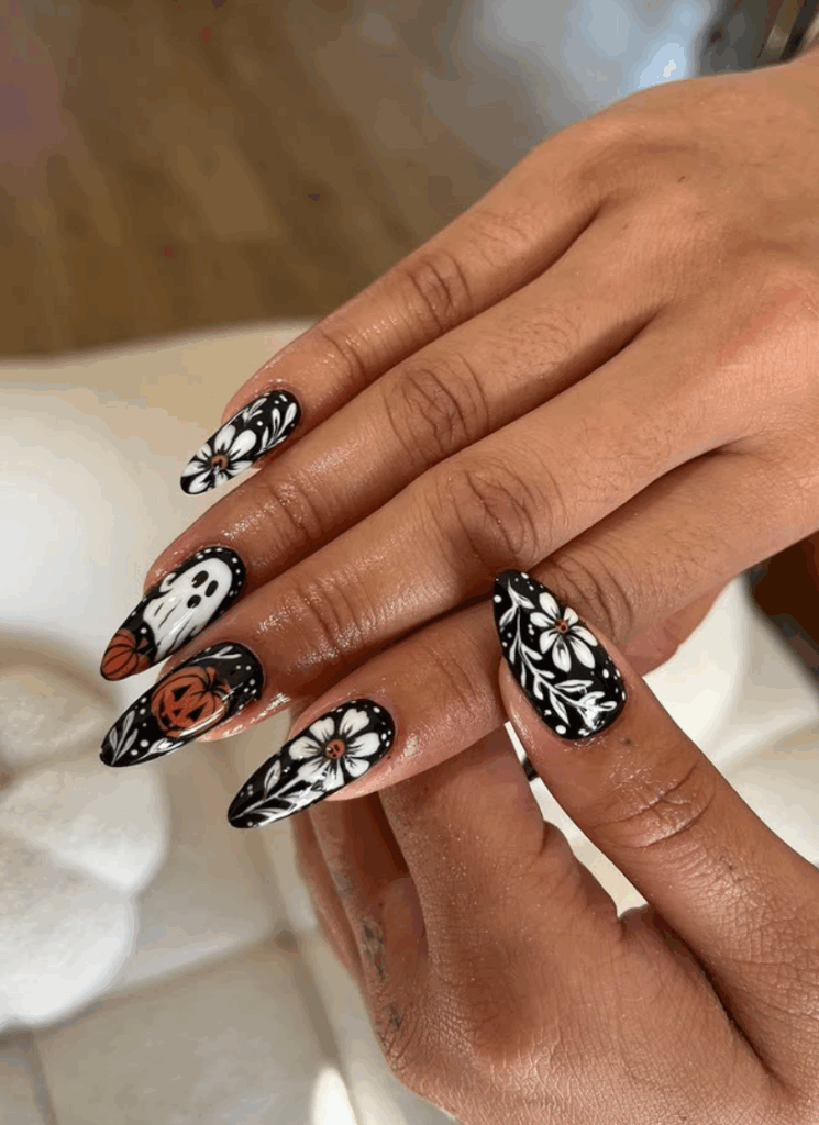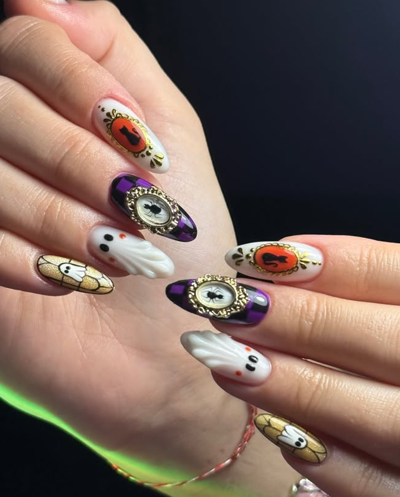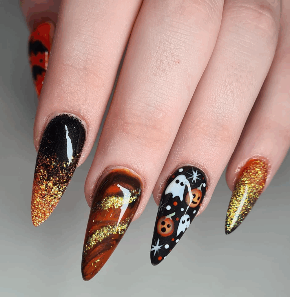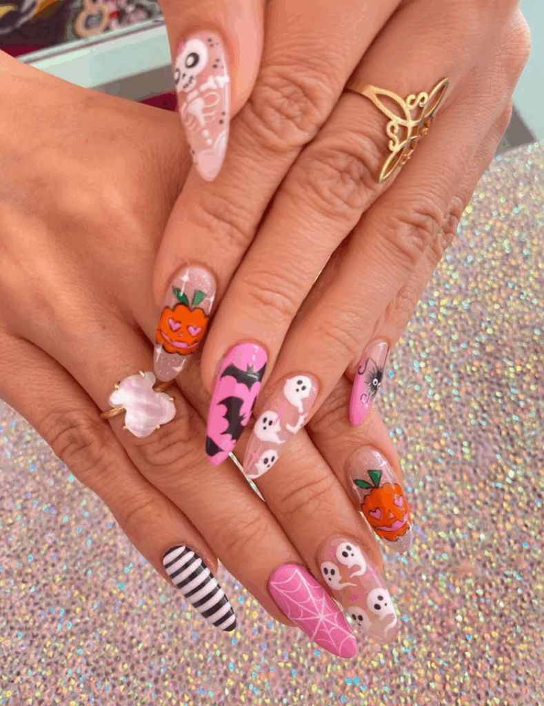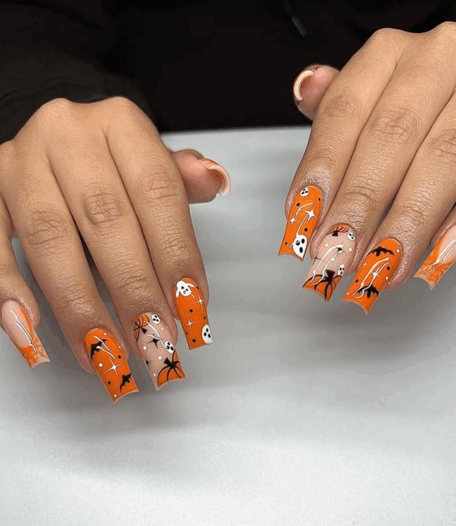 Think black, orange, spider webs, bats, and pumpkins—the essentials of Halloween nail art. These designs never go out of style and are perfect if you want a look that screams Halloween without being too over-the-top.