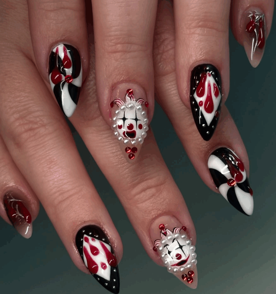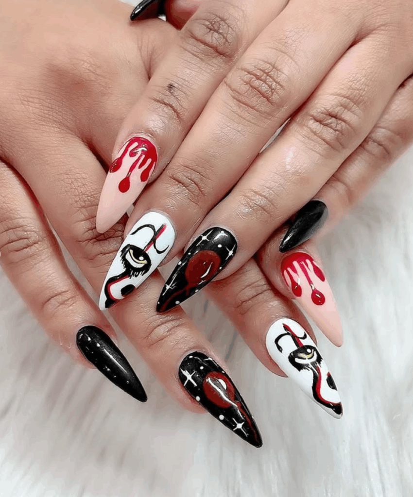 Want a dramatic look? Blood-drip nails are a Halloween favorite. They are creepy, attention-grabbing, and perfect for vampire-inspired costumes.