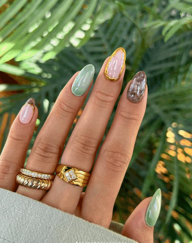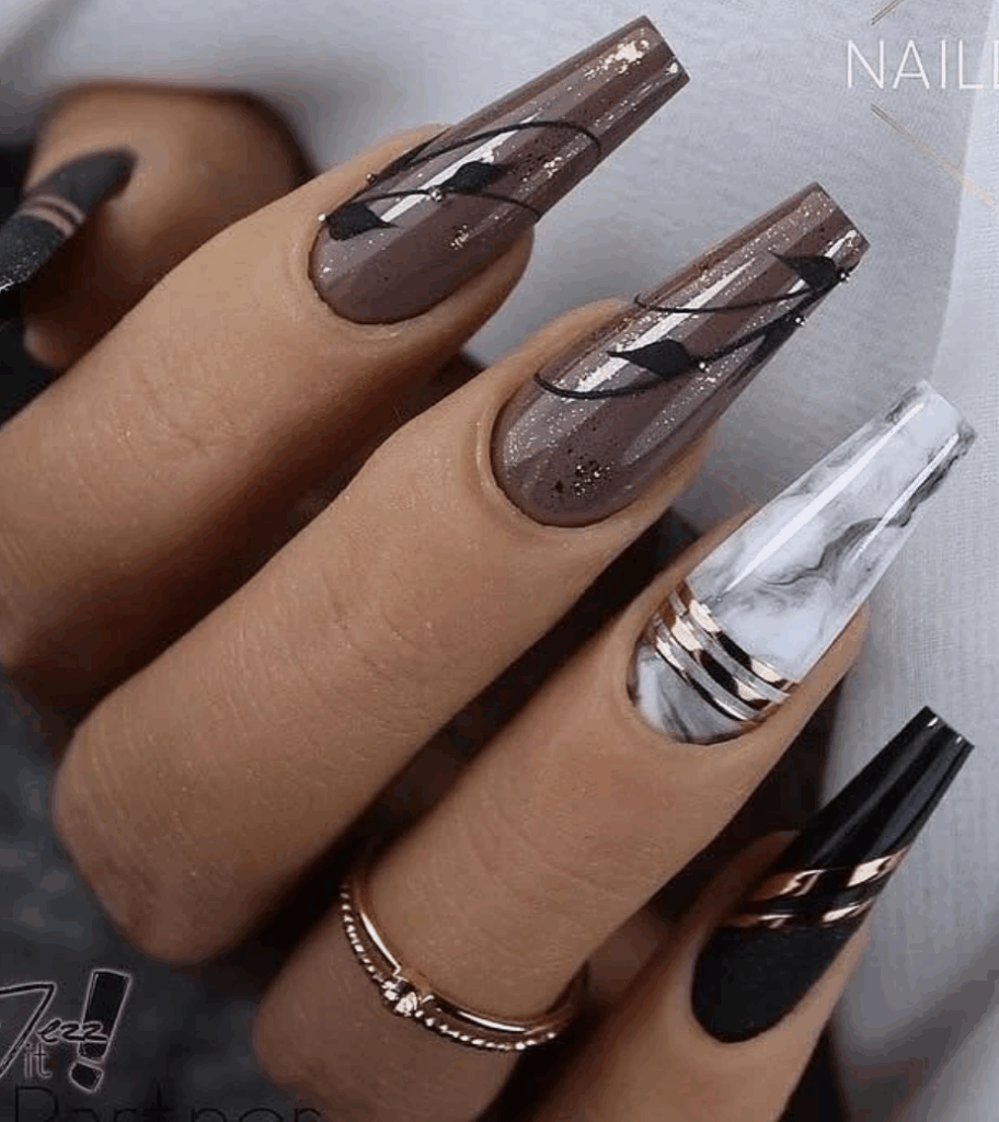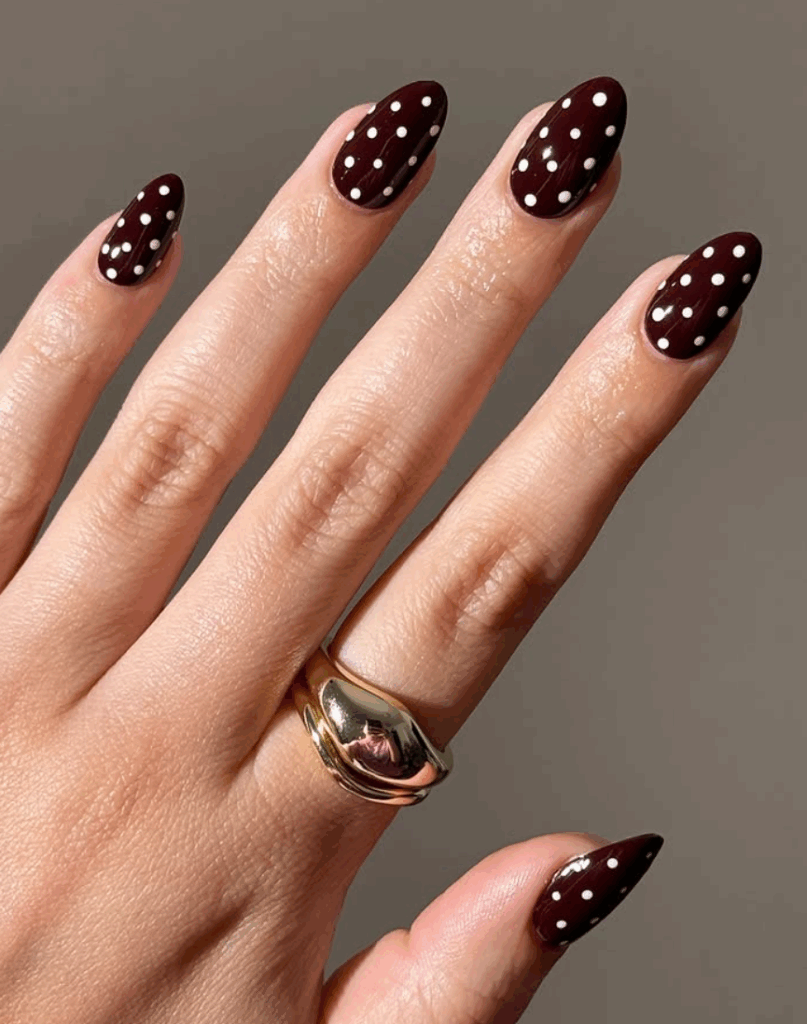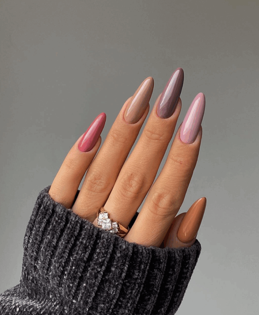 Shades of brown is one of the most trending and chic fall nail colors in 2025. With Mocha Mousse, being the Pantone color of the year, brown has made its way in all aspects of life. From warm caramel and cinnamon tones to rich chocolate and deep espresso shades, brown nails perfectly capture the coziness of autumn. They pair beautifully with fall fashion staples like chunky sweaters, boots, and plaid. Whether you choose a glossy or matte finish, brown nails are a versatile and elegant option for an on-trend autumn manicure.