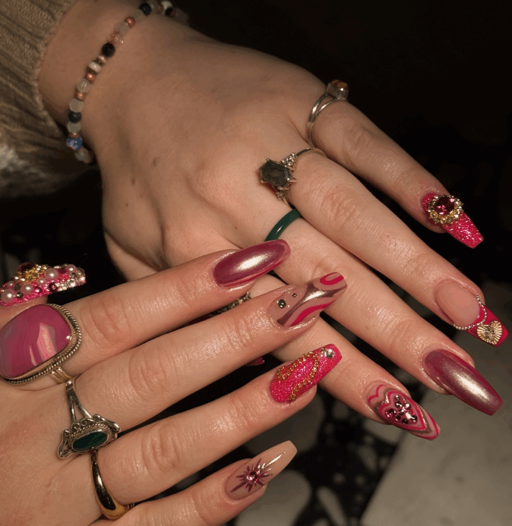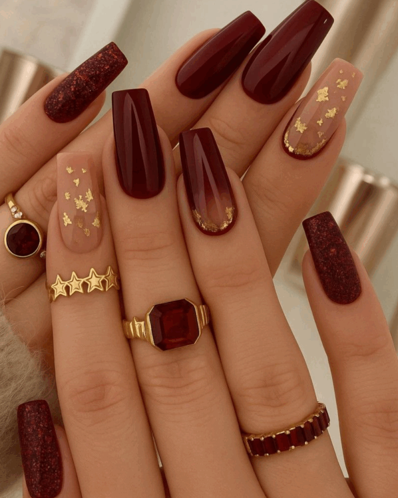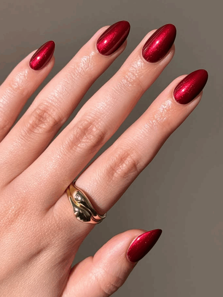 No list of fall nail ideas is complete without shades of red. For fall 2025, expect to see bold burgundy, brick red, terracotta, and wine-inspired tones everywhere. These rich colors perfectly capture autumn’s warmth and look stunning in both glossy and matte finishes. A deep red fall manicure instantly elevates your outfit and adds a sultry seasonal vibe.