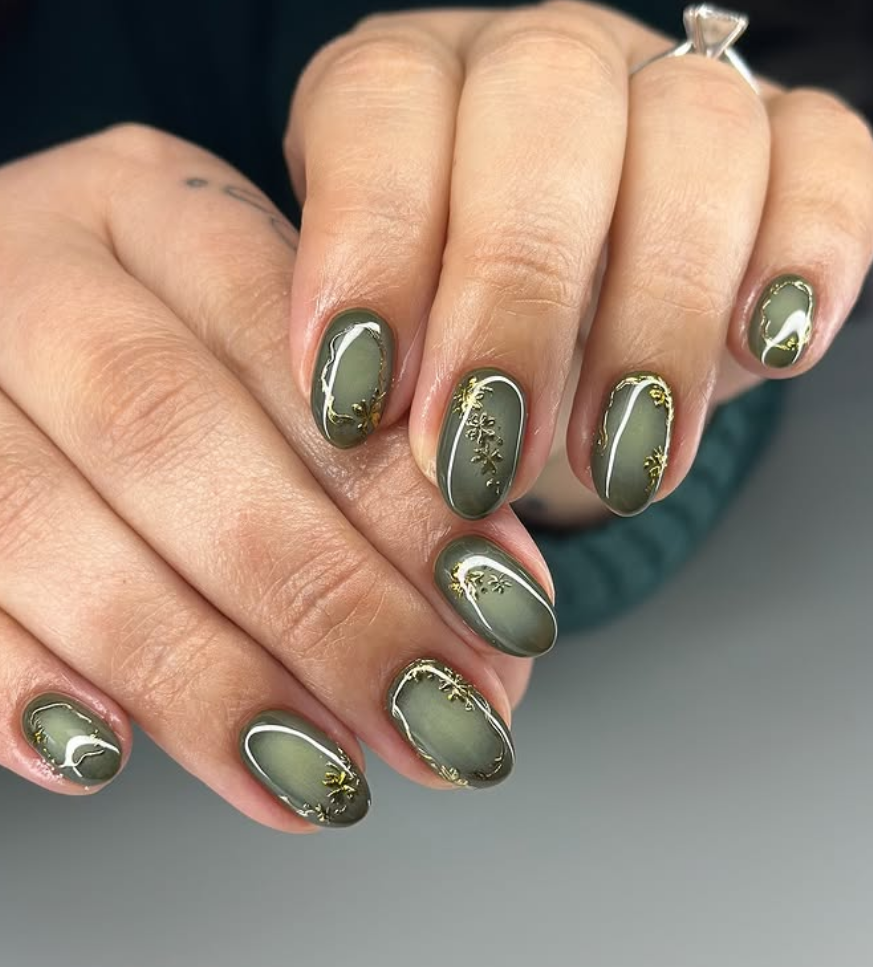 Shades Of Green & Grey Nail Colors For Fall