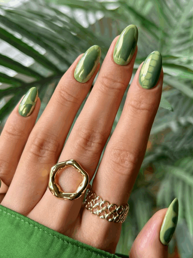 Green has become one of the hottest nail colors for fall 2025. From earthy olive and muted sage to luxurious emerald and mossy greens, these shades bring a fresh yet grounded look to autumn nails. Pair green nails with gold accents or mix them with nude tones, grey tones for a chic seasonal twist. They’re a bold but wearable option for anyone looking to try something different this fall.