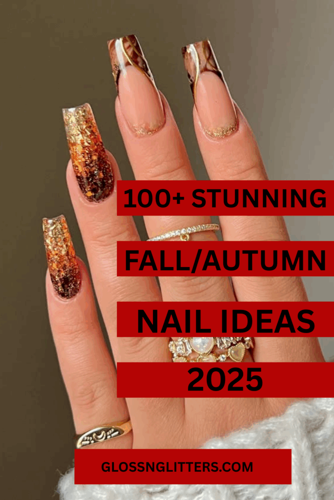 Hi! Autumn, the season of colors is almost here and I am back with my 100+ latest trends in fall nails, for you to try. Fall nail colors are all about cozy elegance and bold creativity. As the season changes, manicures shift from bright summer colors to richer earthy jewel tones, and statement nail art. From chic nude shades to modern French manicures, deep reds, trendy greens, shiny chrome finishes, and unique nail art designs, this year’s fall manicure trends are full of inspiration.
