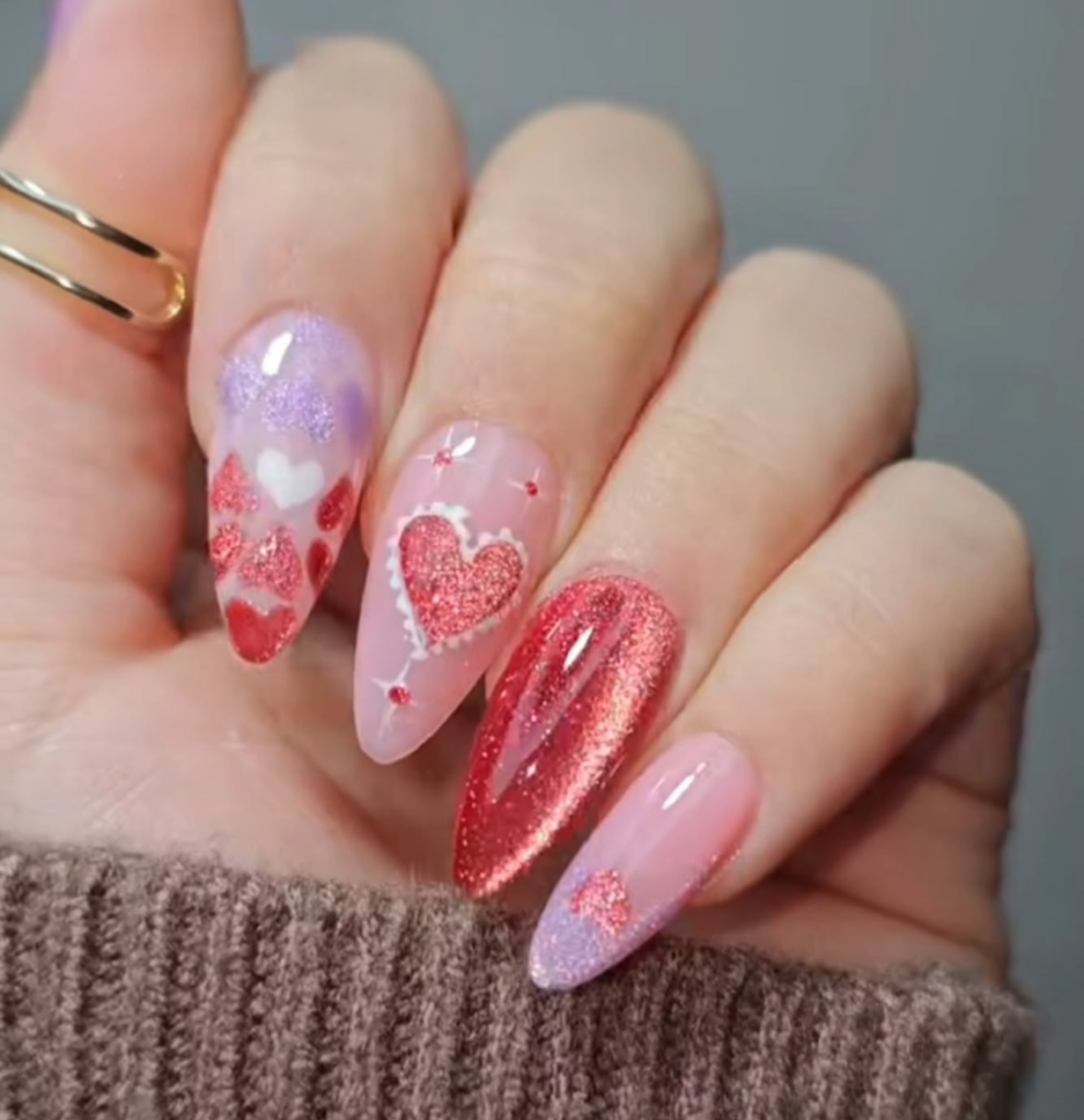 Sparkly and glam Valentine’s Day Nails