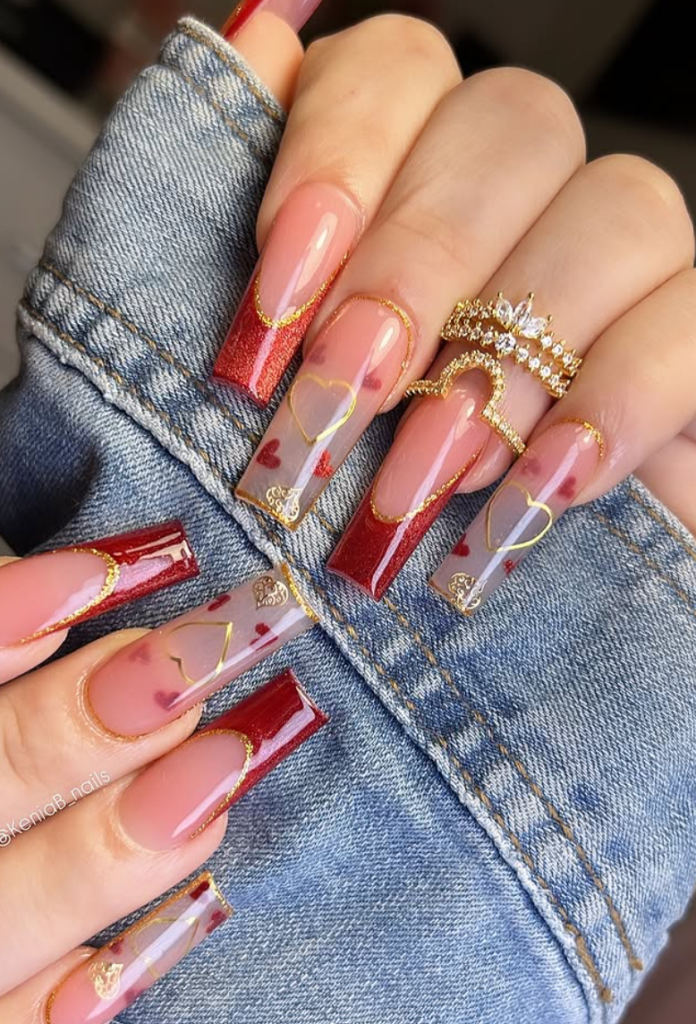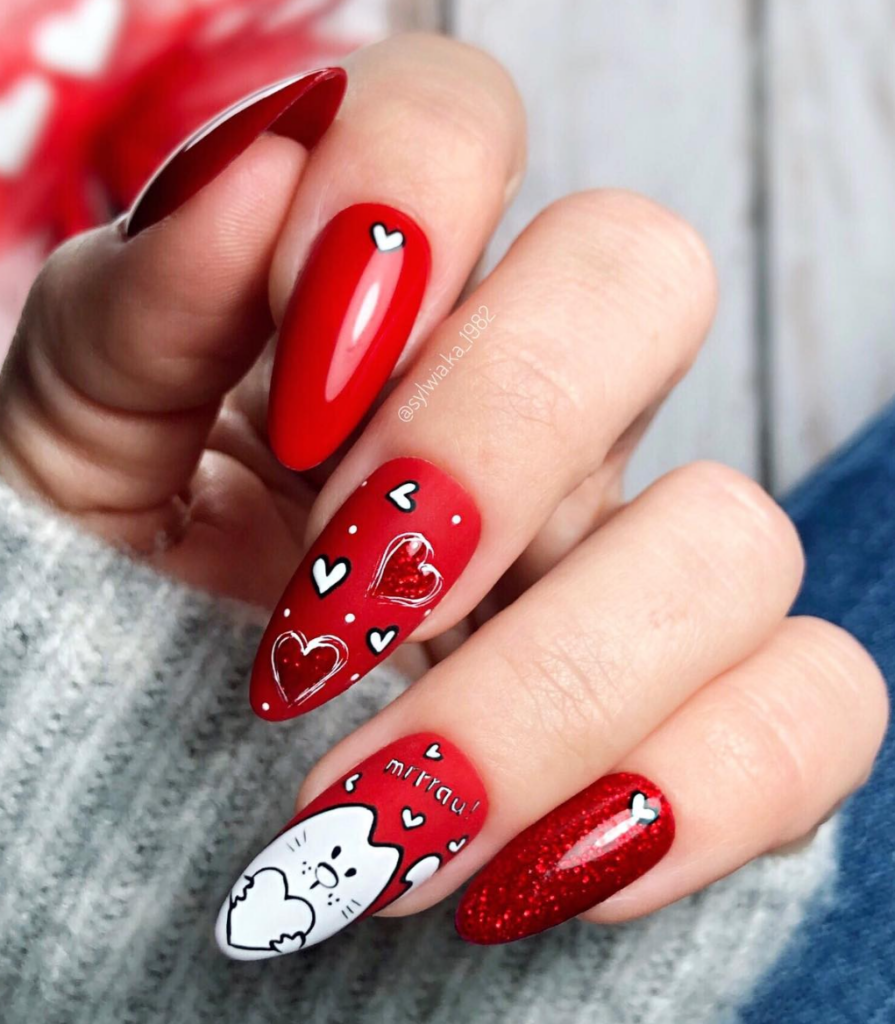 Classic red Valentine’s day nails never go out of style. They are always trendy, chic and modern. Red Valentine’s day nails with little hearts, red French tips, red and pink nail color combo looks absolutely stunning. Below are some of the most beautiful Valentine’s day nail ideas for you to try.